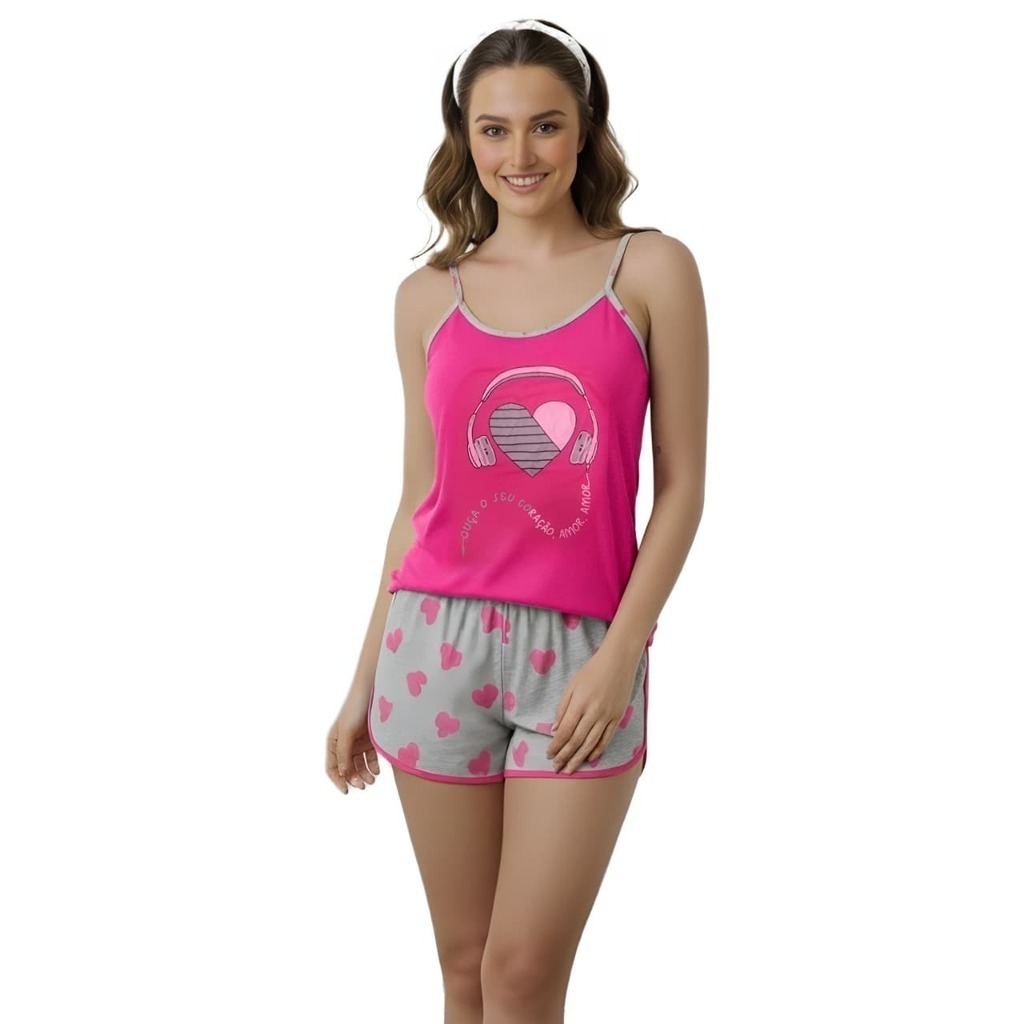 Baby doll composto por blusa regata com estampa, e short liso com elástico na cintura. Tecido confeccionado em poliéster super confortável e macio permitindo uma noite de sono muito mais agrádavel.