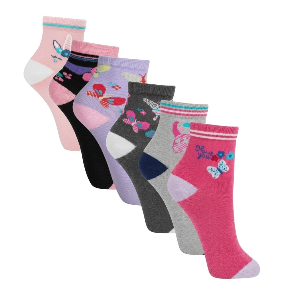 Kit com 6 pares de meia infantil com estampas fofinhas para meninas. Tecido de alta qualidade, respirável confeccionado em algodão, não deixa mau cheiro no pé, além de ser super confortável.